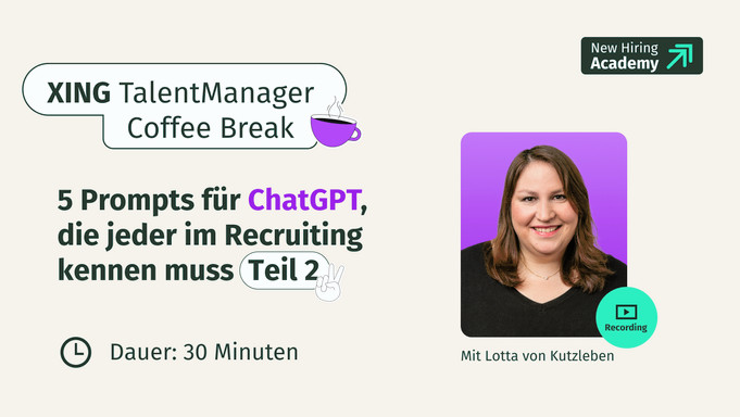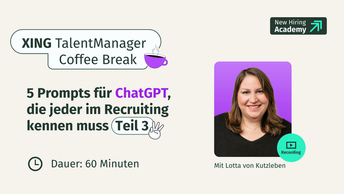 Erfahren Sie in unseren Expert Sessions mehr über die neuesten HR-Trends, lernen Sie die Recruiting-Lösungen von XING kennen oder erweitern Sie in unseren Training Sessions Ihre Kenntnisse bei der Nutzung der XING Produkte.